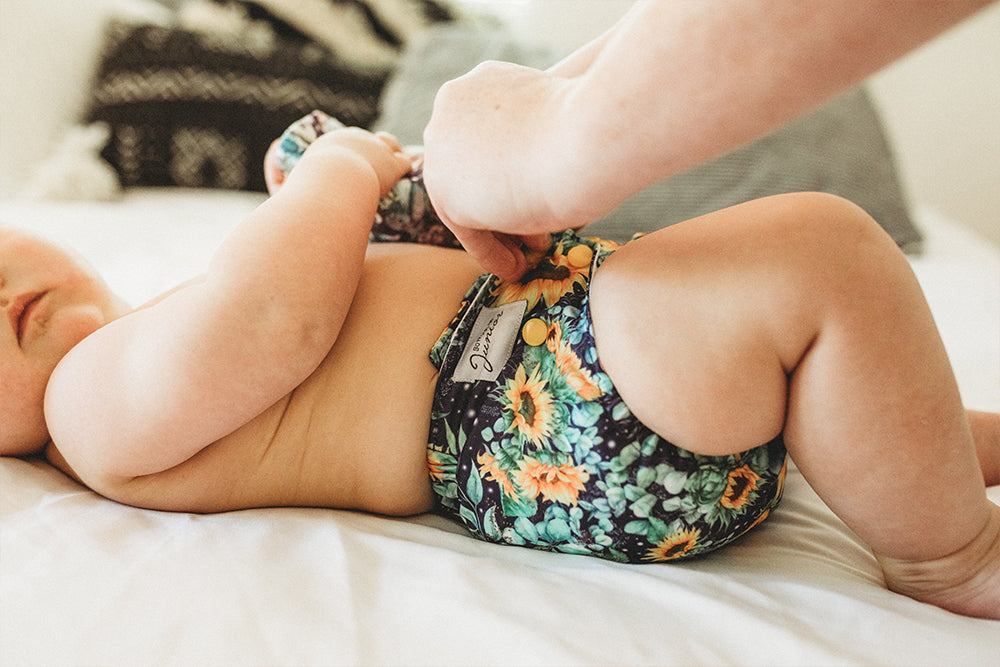 - Secure the cloth nappy with snaps or clips. (Prefold and flat nappies will need nappy grips).